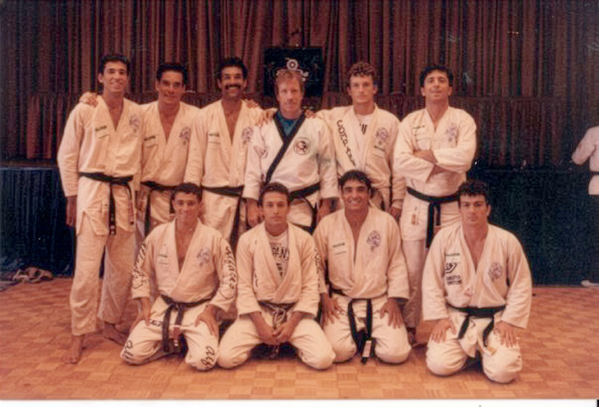 As Chuck and I had been training together every morning since 1979, I, of course, told Chuck about these amazing Bros and remember suggesting him I bring them to his Tarzana residence for a private training session with us. So, the relationship began in earnest. Chuck, Bob Wall and I then helped set the brothers up in their first academy in Encino and help with immigration, etc. and away they went.